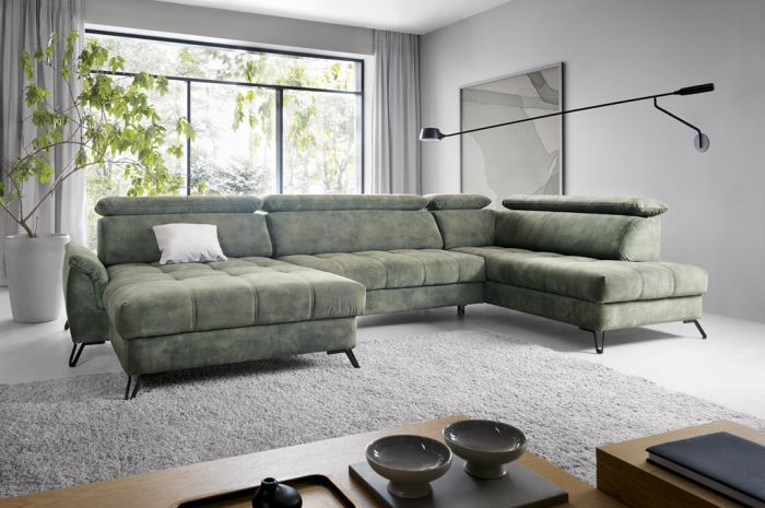 - Prednosti: Velika površina za sedenje, primerna za dnevne sobe z veliko družinskega dogajanja.