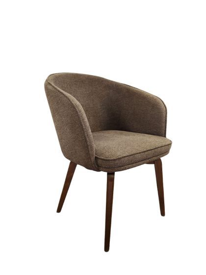 Moderen jedilniški stol Brina, se lepo poda v vsak jedilni prostor. Stol je v obliki fotelja, zato je izredno udoben. Podnožje je iz masivnega lesa - bukev v temni barvi. Oblazinjenje je prijetni rjavi tkanini.