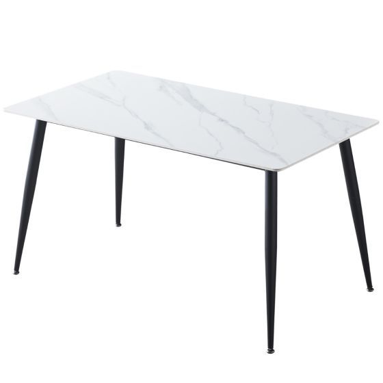 Jedilna miza ADRIA, na voljo v več velikostih, oblikah in barvah. Plošča v kvadratni ali pravokotni obliki je debela 10,5 mm, z zaobljenenimi robovi in je v celoti narejena iz sintranega kamna v več barvnih varijantah. Na voljo je v v Snow beli barvi visokega sijaja, mat sivi Armani barvi z marmornatim vzorcem ter v imitaciji naravne barve hrasta. Sintrani kamen je narejen iz kombinacije naravnega kamna v različnih barvah in ima več prednosti pred navadno keramiko. Je močnejši od velikih keramičnih plošč in se ne razbije zlahka. V primerjavi s ploščami iz naravnega granita pa je tudi naravno vodoodporen. Prav tako je okolju prijaznejši od kemično obdelanih kremenčevih plošč. Noge mize so izdelane iz kovinskih cevi s premerom 49 mm, in prašno lakirane za boljšo zaščito. Maksimalna nosilnost vseh varijant mize je 50 kg.