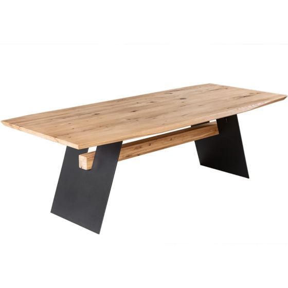 Jedilna miza GRADOS narejena iz masivnega, oljenega, hrastovega lesa, z dolžinskim lepljenjem. Miza je na voljo v dveh različnih dimenzijah 240x100 in 200x100 cm. Plošča ima razgibano obliko, njena debelina je 2+2 cm. Višina mize je 75 cm. Miza vključuje tudi podnožje, ki je sestavljeno iz dveh metalnih nog, prašno lakiranih v črno barvo in sredinske grede, pravtako narejene iz masivnega, oljenega, hrastovega lesa.